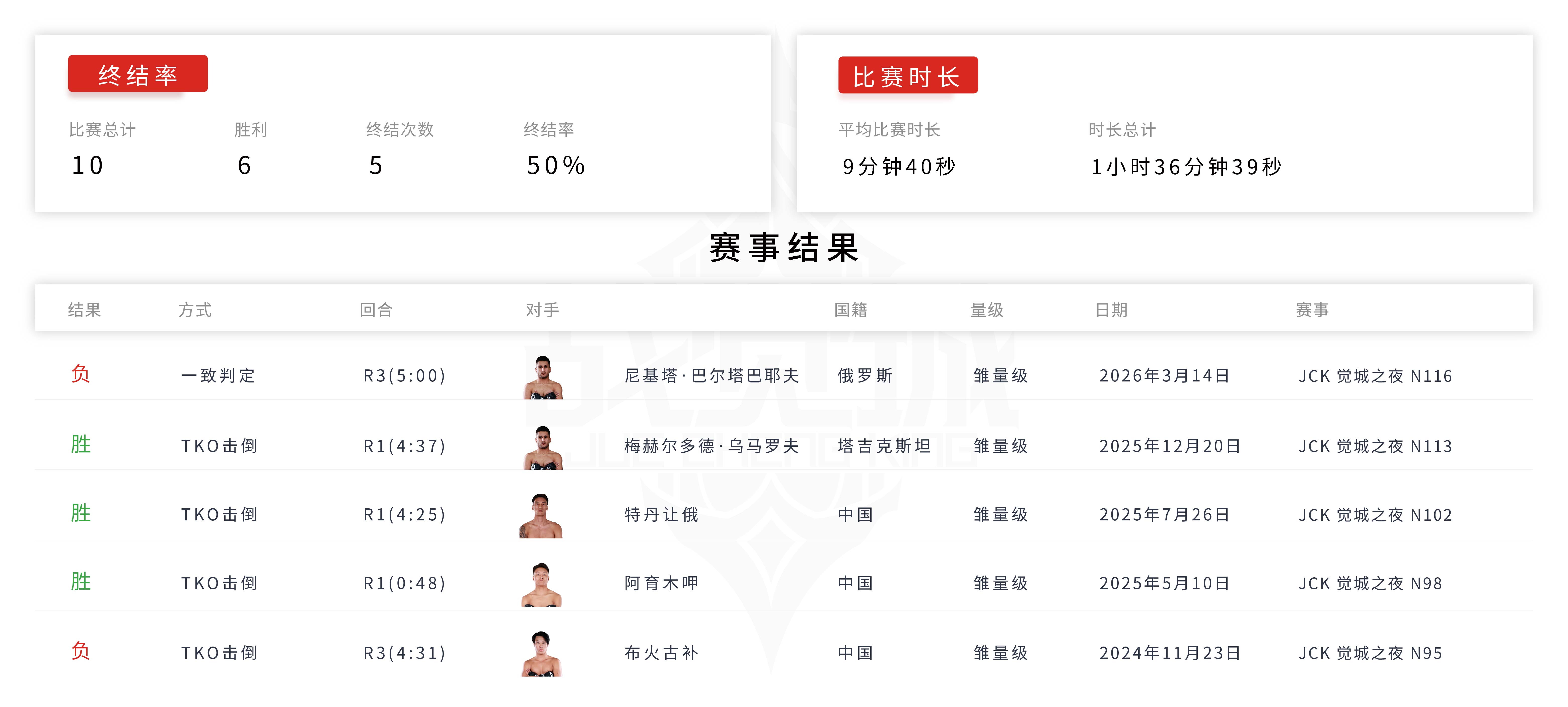 所属俱乐部:北极狼格斗俱乐部