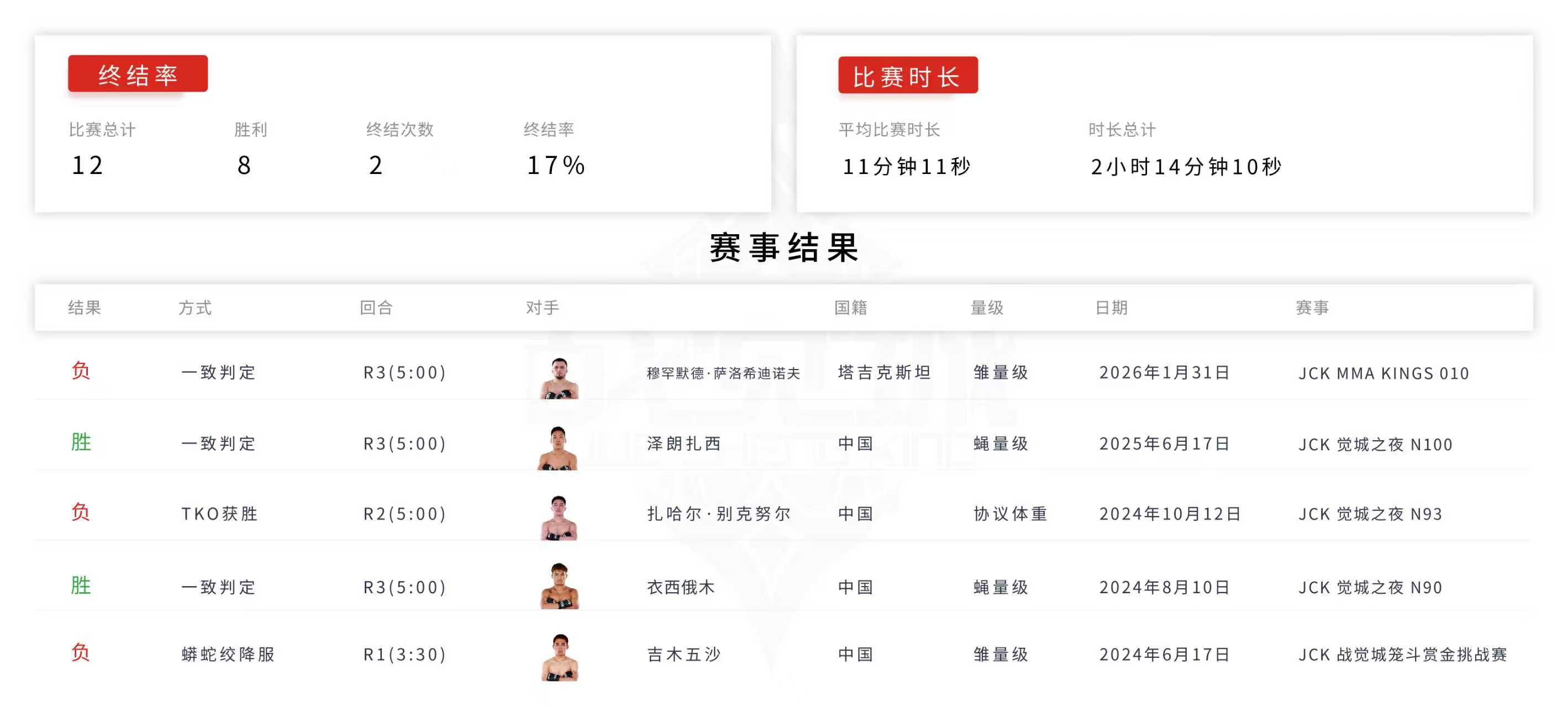 所属俱乐部:彝格斗综合格斗俱乐部